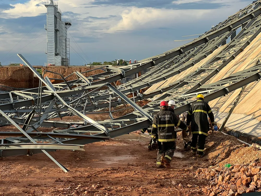 Dois trabalhadores morreram durante o desabamento da estrutura de metal de um barracão que estava sendo construído em Rondonópolis, a 693 km de Sinop.