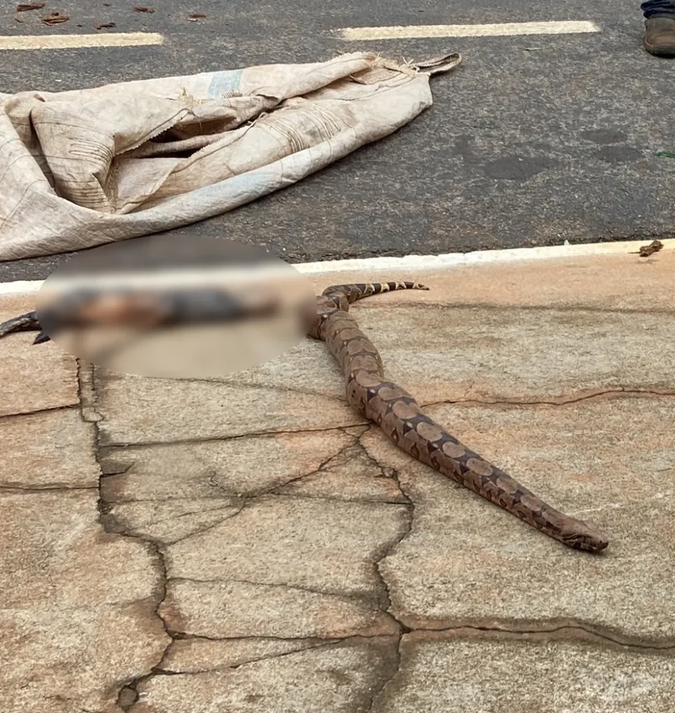 Jiboia de 2 metros engole gato e assusta moradores em Sinop