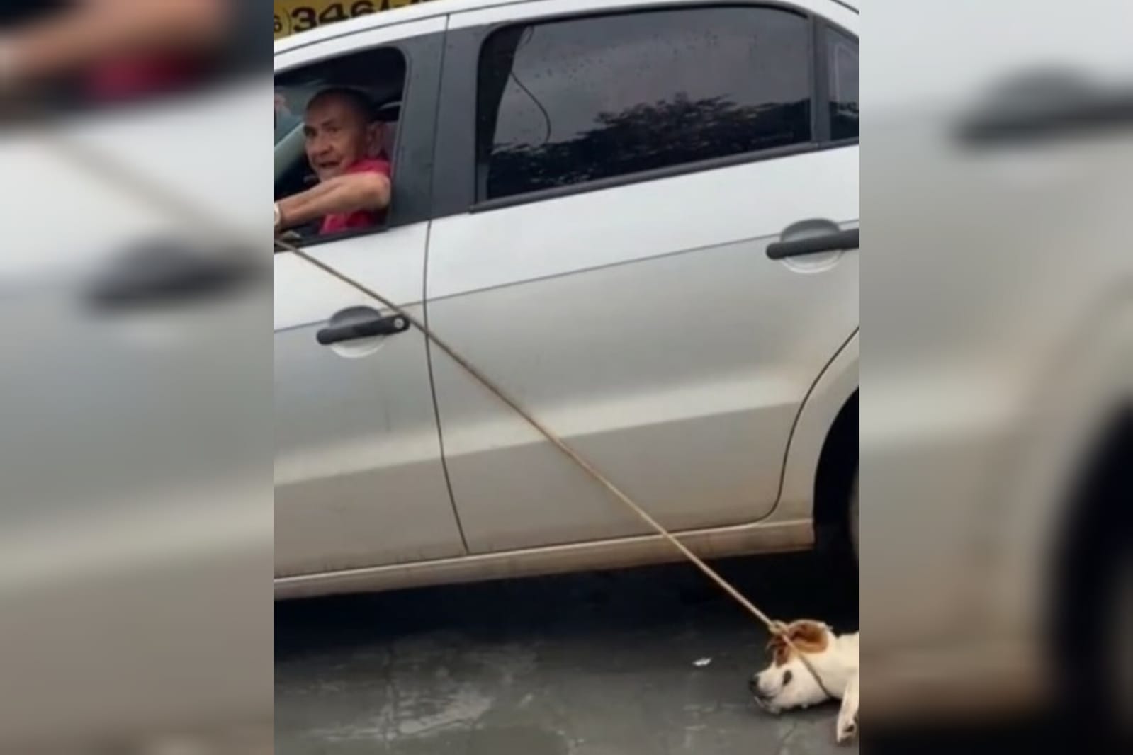 Um homem, de 76 anos, foi preso em flagrante, na manhã deste sábado (11), após arrastar um cachorro amarrado a um carro, em Jaciara. O flagrante foi feito por uma testemunha em vídeo e mostra o momento que o animal é arrastado na avenida.