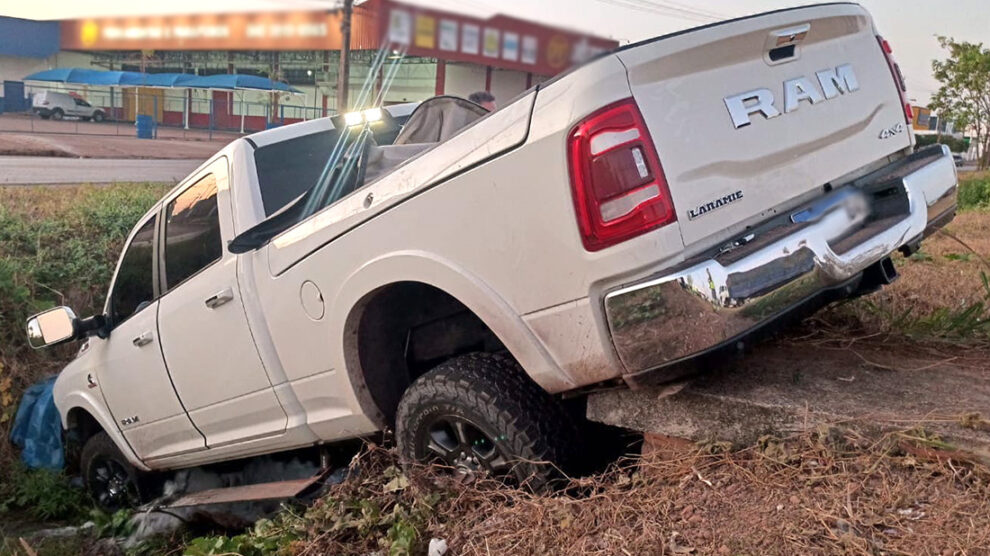 Camionete cai dentro de vala e motorista é preso em Sinop