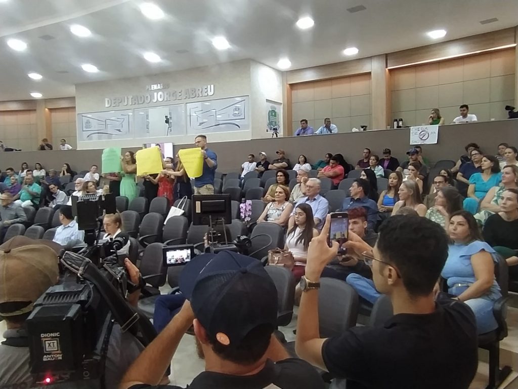 A leitura da nota foi realizada em plenário pelo vereador Mário Sugizaki (Podemos) e acompanhada por representantes da categoria que protestaram durante a sessão.