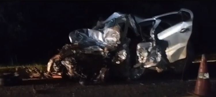 Segundo a Polícia Militar, o veículo colidiu frontalmente com uma caminhonete após uma tentativa de ultrapassagem.