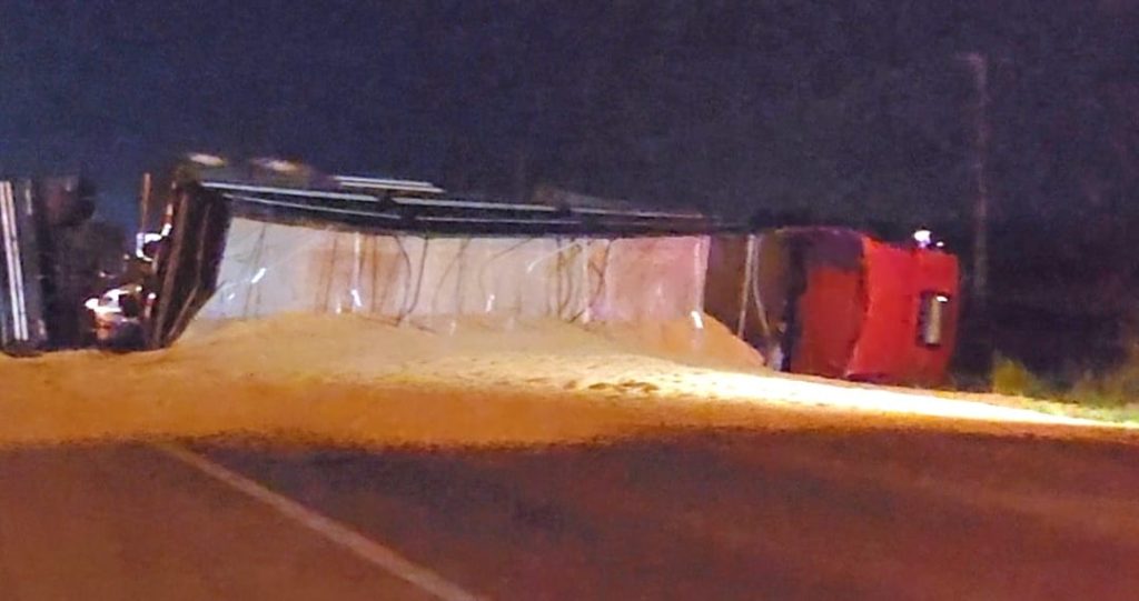 Os dois veículos seguiam em sentidos contrários quando houve a colisão, que causou o tombamento da carreta.