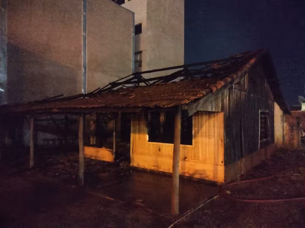 O Corpo de Bombeiros tentou conter as chamas, mas a residência foi completamente destruída.