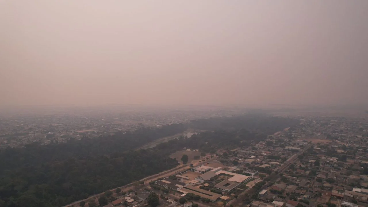 Imagem aérea de Sinop coberta por fumaça (Foto: Mauricio Vitorino)