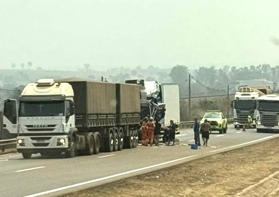 Um motorista morreu após colidir o caminhão que dirigia na traseira de uma carreta na BR-163, em Rondonópolis, na manhã desta quinta-feira (19).