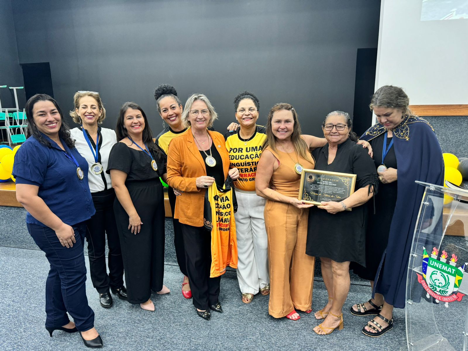 Integrantes da AJEB-MT reunidas para celebrar homenagem