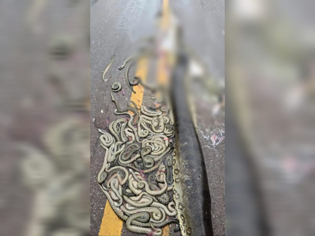 Uma sucuri-verde, que estava grávida, foi atropelada nesta segunda-feira (6) na MT-338, em Porto dos Gaúchos, a 238 km de Sinop. Com cerca de 5 metros de comprimento, o animal morreu e teve cerca de 40 filhotes expelidos da barriga após o acidente. Motoristas registraram o momento e relataram que ainda havia movimentos no corpo […]