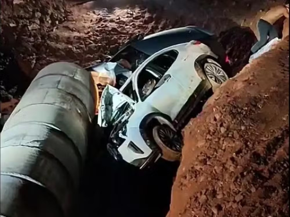 Conforme o boletim, o motorista em fuga tentou retornar numa área em obras, perdeu o controle e caiu numa vala. O carro da vítima, que seguia logo atrás, também saiu da pista e caiu.