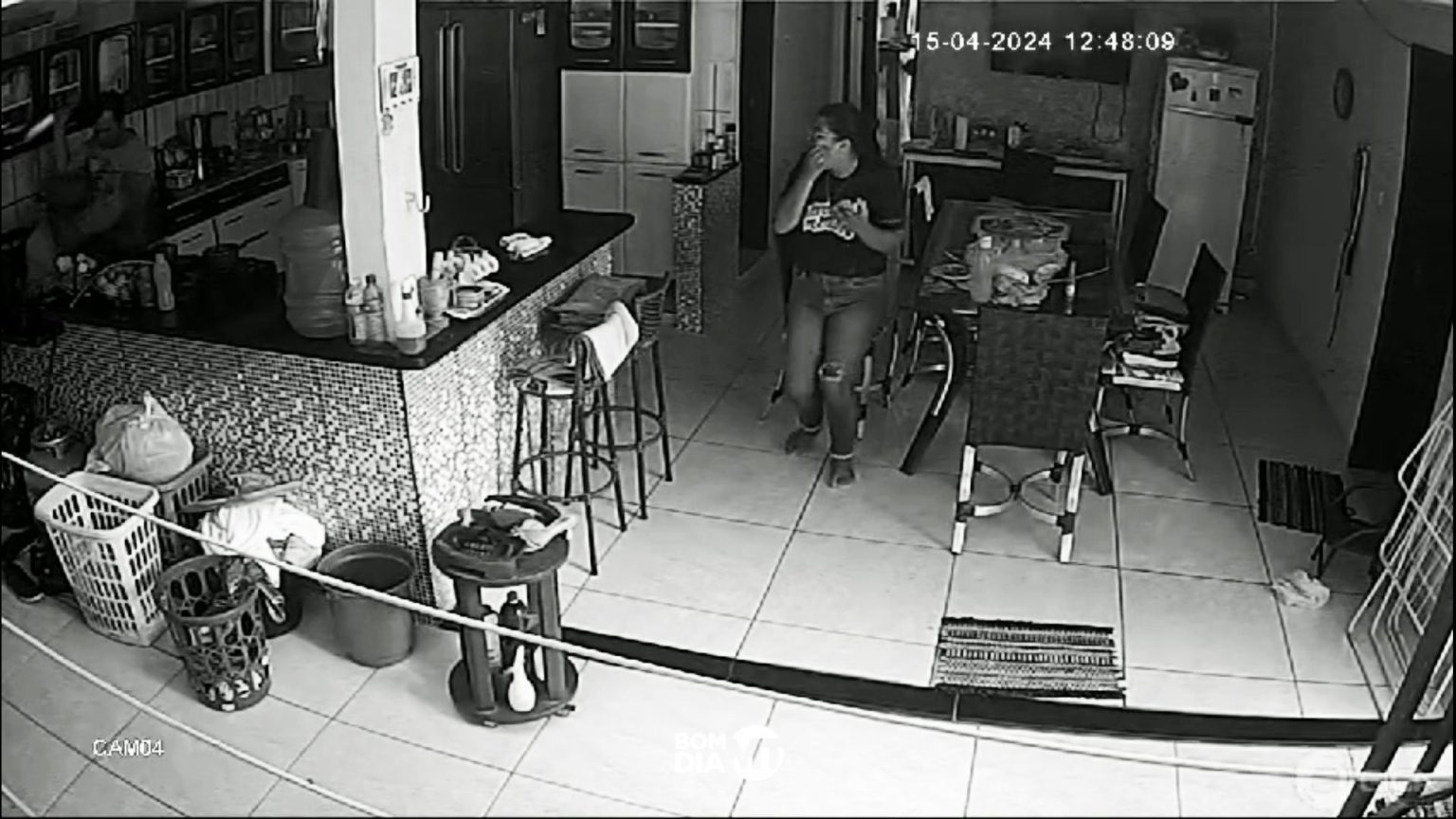 Câmeras de segurança registraram o crime. Nas imagens, a vítima aparece conversando com o acusado na cozinha, quando ele pega uma faca e desfere diversos golpes. Em seguida, foge do local.
