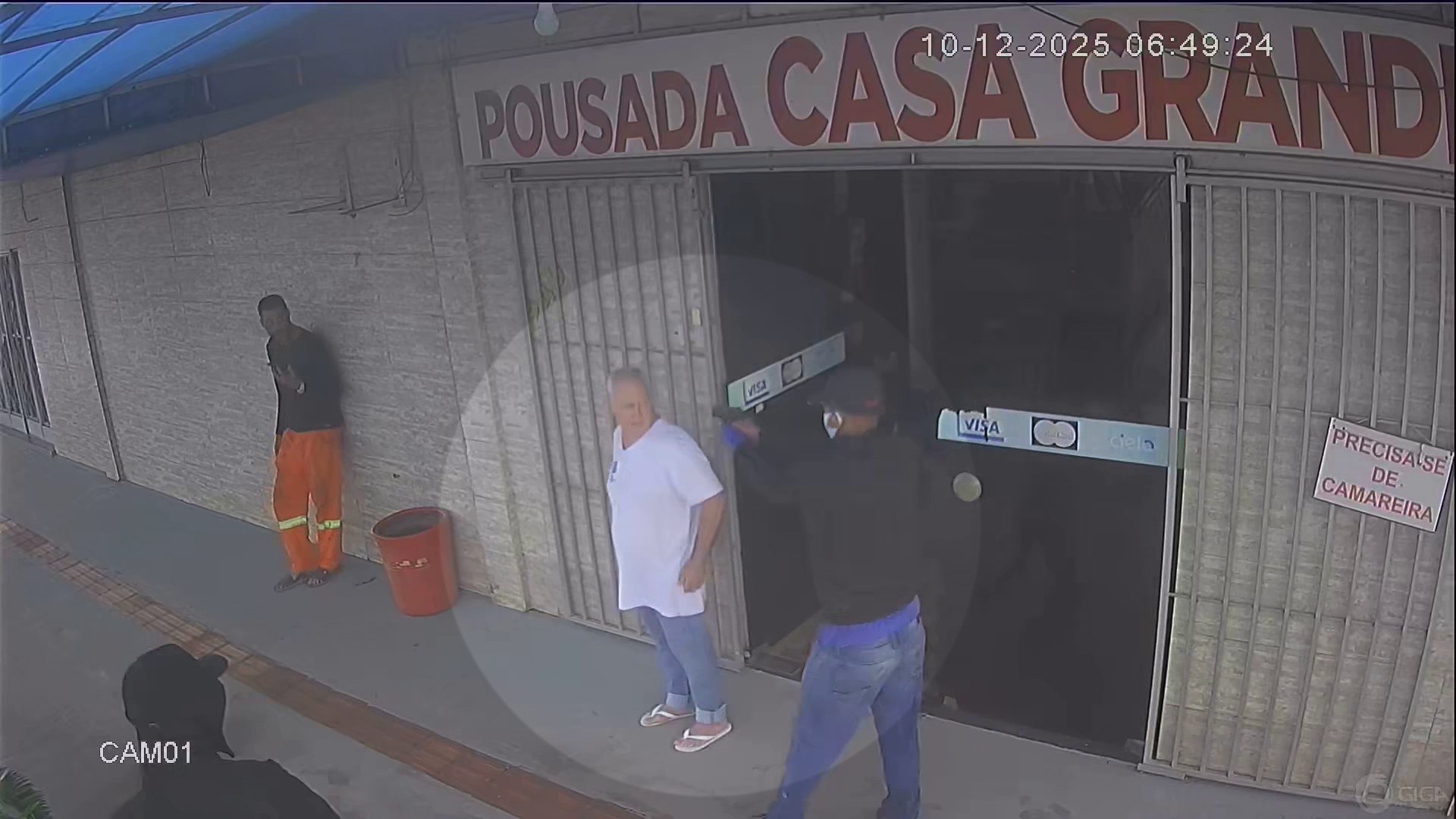 O homicídio ocorreu por volta das 6h50, em frente a um hotel onde a vítima estava. Câmeras de segurança registraram a movimentação de dois suspeitos que monitoravam o local. Um deles, vestindo moletom e máscara, chegou a entrar na recepção antes do ataque. No momento em que João saiu do estabelecimento, foi abordado pelo segundo suspeito. As imagens mostram que o atirador rendeu a vítima e parou brevemente para conferir algo — possivelmente a identidade ou a tornozeleira eletrônica — antes de efetuar os disparos e fugir com o comparsa.