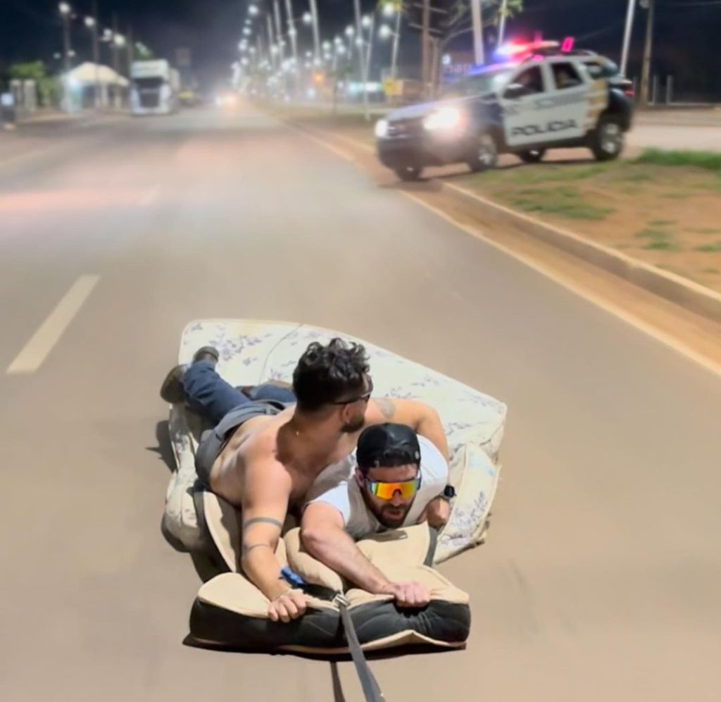 Influencer é preso em MT após ‘surfar’ em colchão puxado por caminhonete