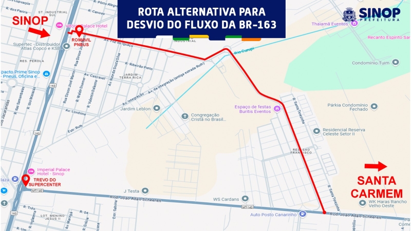 Prefeitura cria rota alternativa para aliviar trânsito entre Sinop e Santa Carmem