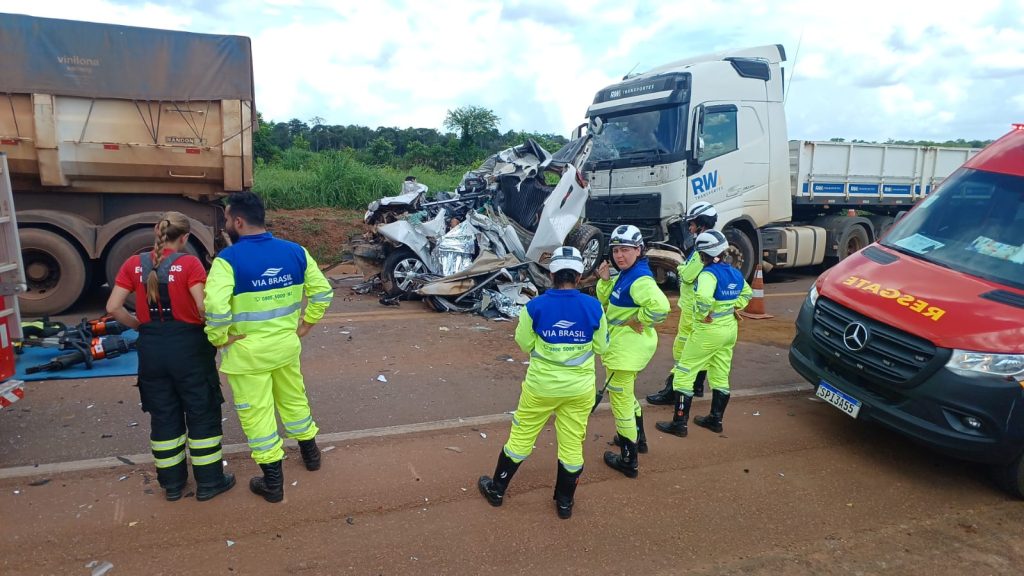 Caminhonete é esmagada por carretas na BR-163 e motorista morre em Sinop