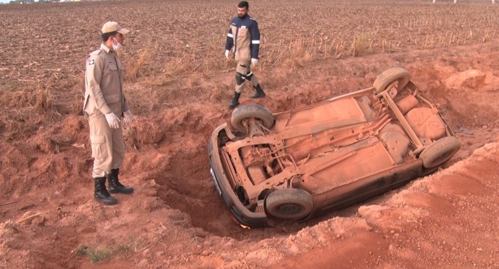 Veículo capota com cinco pessoas em estrada rural de Sinop