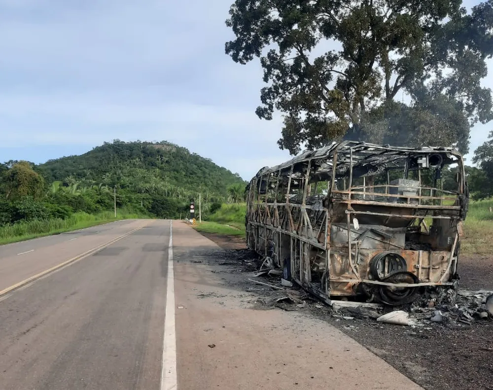 Ônibus pega fogo na estrada e 40 passageiros são retirados às pressas em MT