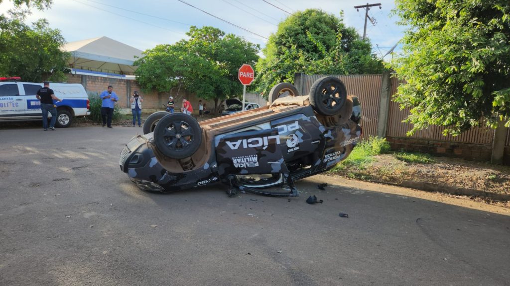 Viatura capota durante busca a suspeitos de roubo em Sinop