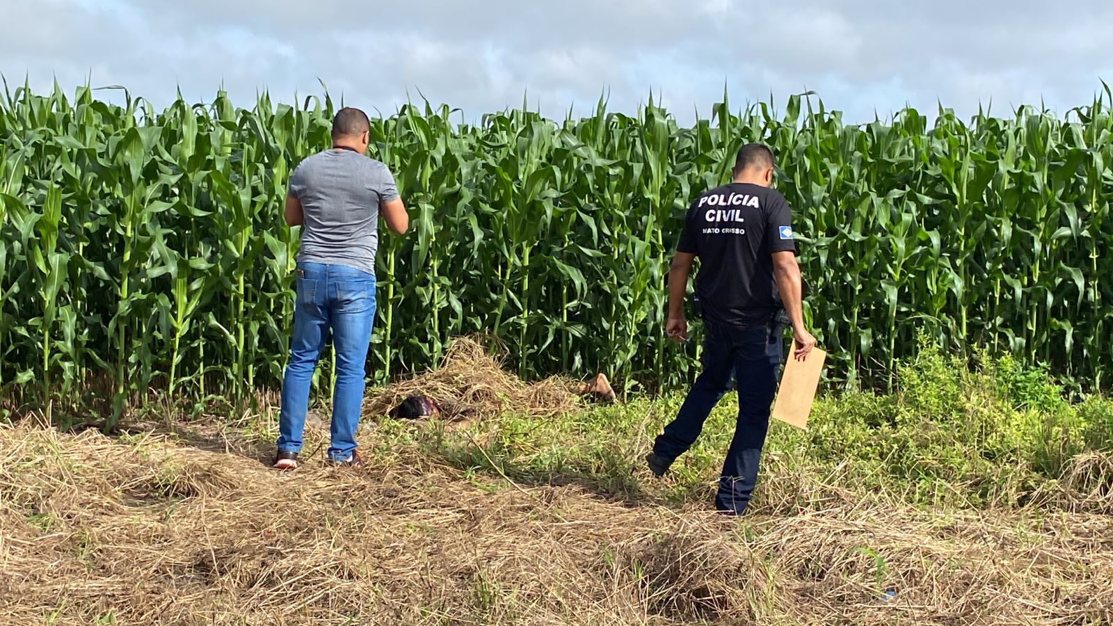 Ainda de acordo com a perícia, o homem foi assassinado no local. Os criminosos cobriram o corpo parcialmente com palhas.