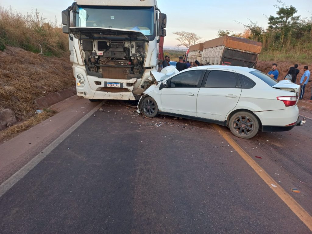 Carro colide com carreta na BR-163 entre Sinop e Itaúba