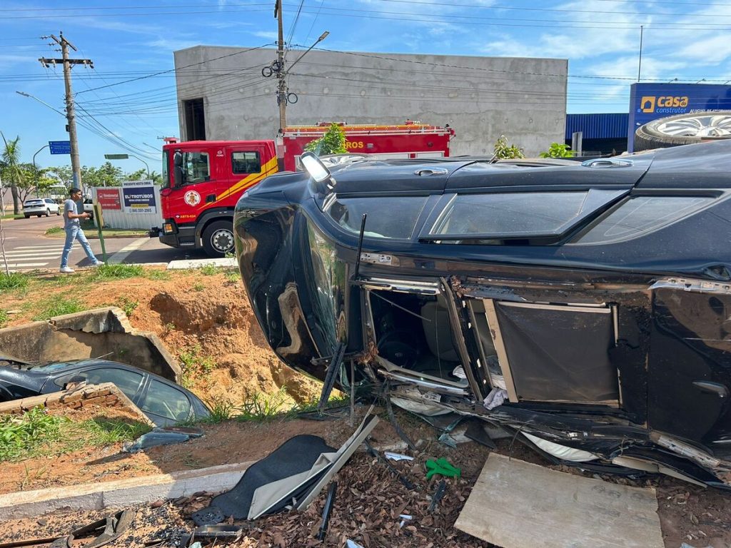 Acidente em Sinop: carro capota e outro vai parar dentro de valeta