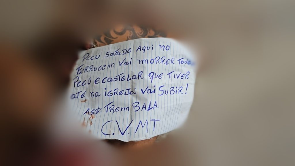 A polícia ainda informou que um papel foi deixado sobre o corpo com uma mensagem escrita a caneta, indicando que membros de facções criminosas rivais serão executados.