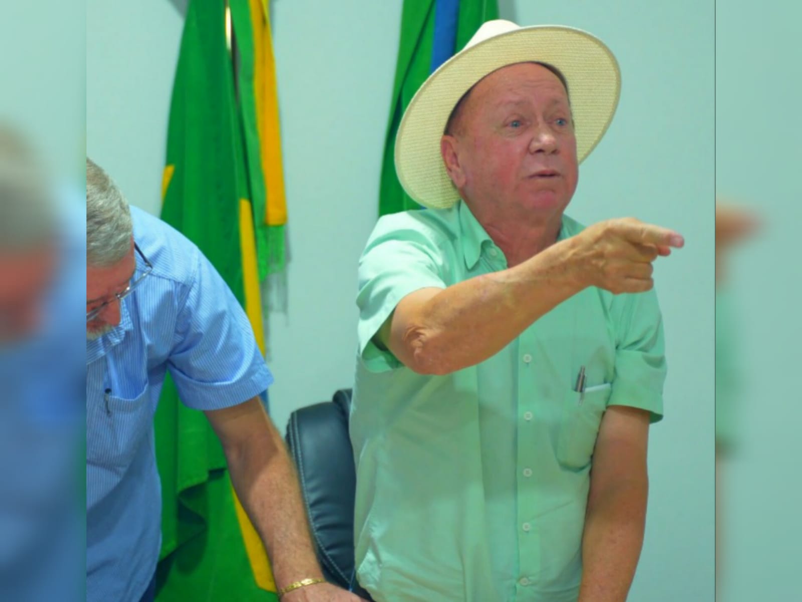 “Dá licença, da licença, você é o mais jaguara que tem aqui em Sinop”, disse Dorner ao repórter, que continua com a pergunta se houve alguma consulta à população sobre a escolha entre uma nova prefeitura e um hospital.