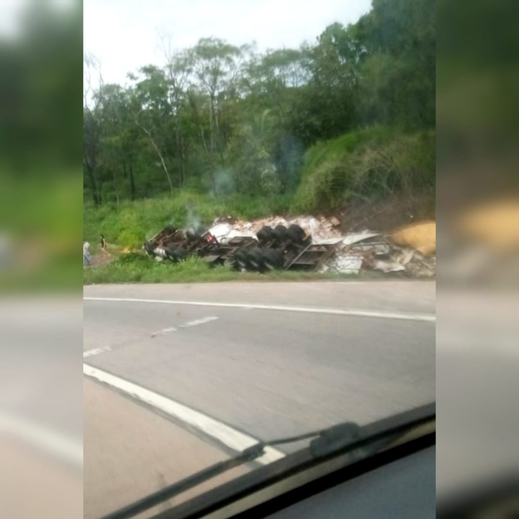 Tombamento de carreta deixa três mortos e um ferido em rodovia de MT