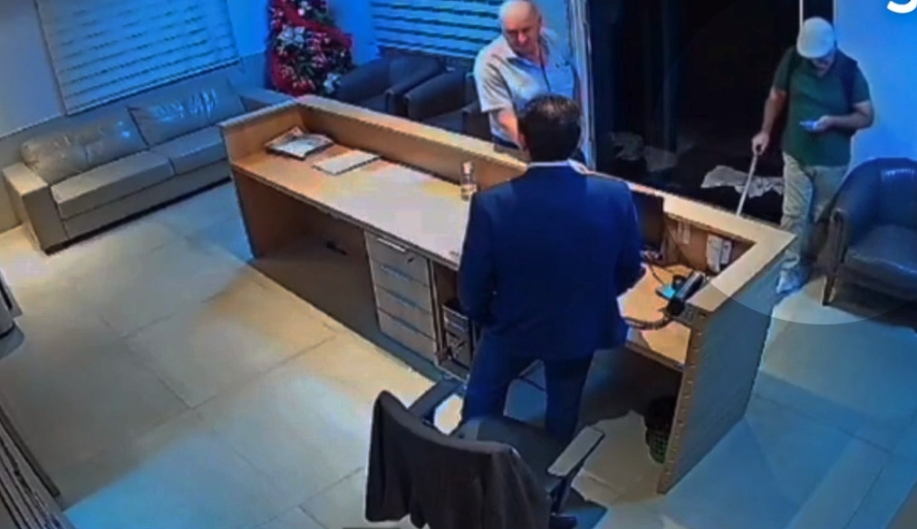 vídeo registra advogado, sócio e atirador no escritório antes do crime (reprodução)
