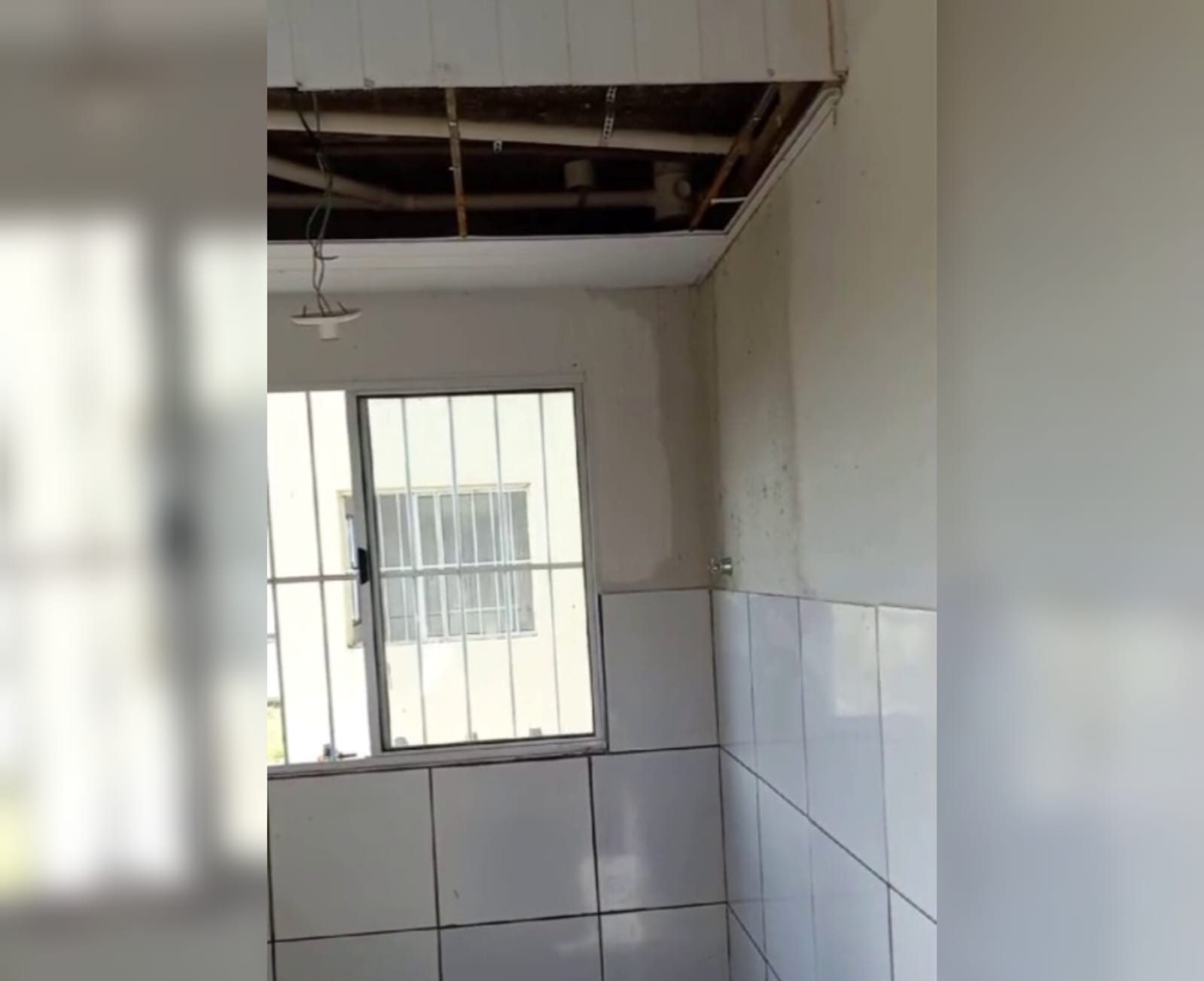 Em outro vídeo, uma moradora mostra o forro do apartamento descoberto, com água vazando. “Esta água está vindo do quarto do meu apartamento para o primeiro andar, porque em meu andar não há vazamento. Eu quero ver quem vai se responsabilizar por este prejuízo, está molhando todo o apartamento dele.”