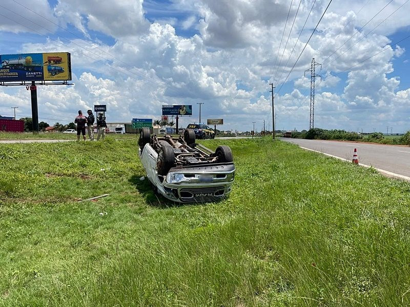 Um acidente na manhã desta quinta-feira (29) em Nova Mutum deixou uma caminhonete capotada na BR-163, em Nova Mutum/MT.
