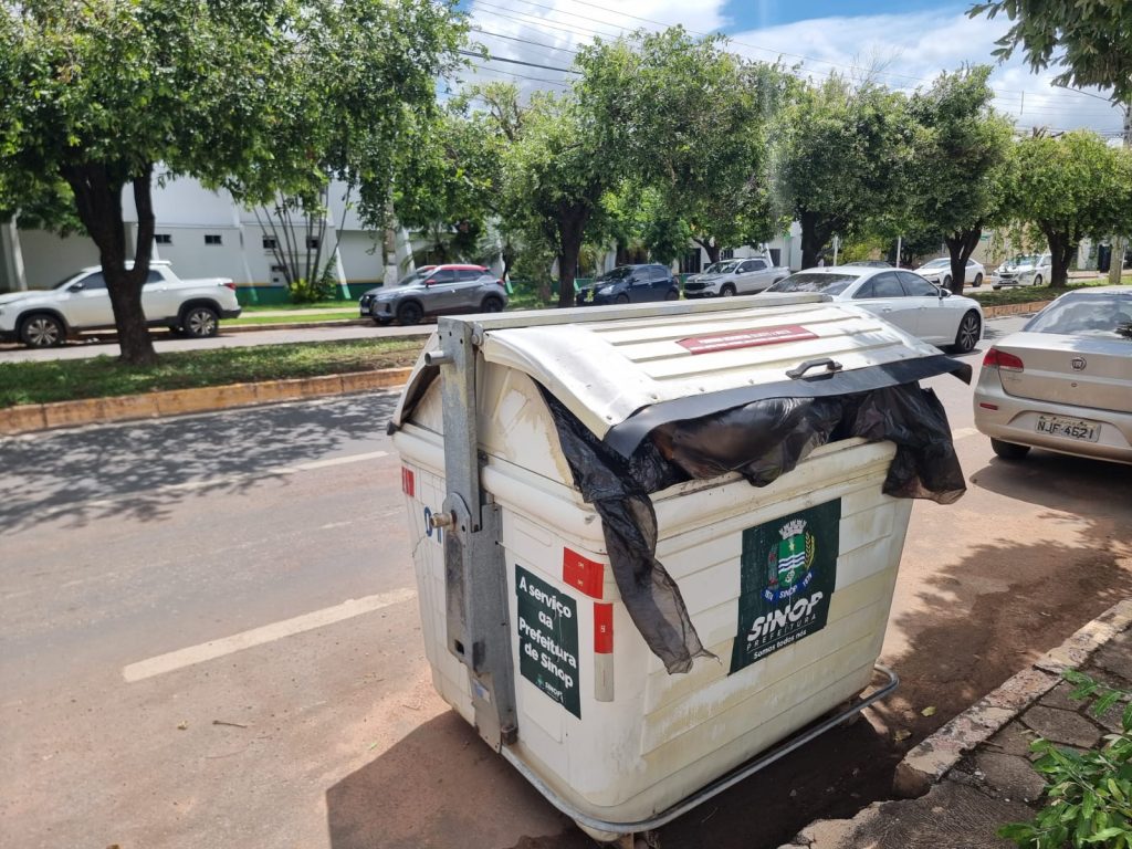 Falta de coleta deixa contêineres de lixo lotados na área central de Sinop