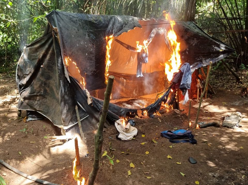 Barraca de garimpeiros ilegais desmontada durante operação policial (foto: Polícia Federal)