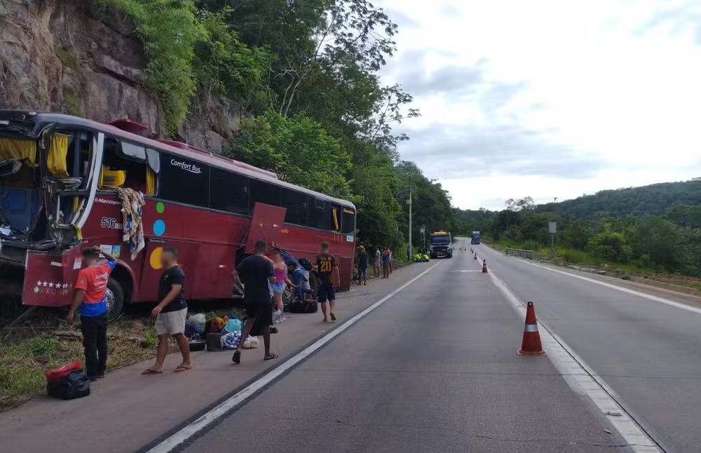 As causas do acidente estão sendo investigadas. O ônibus bateu contra um penhasco na beira da rodovia e ficou com a lateral destruída.