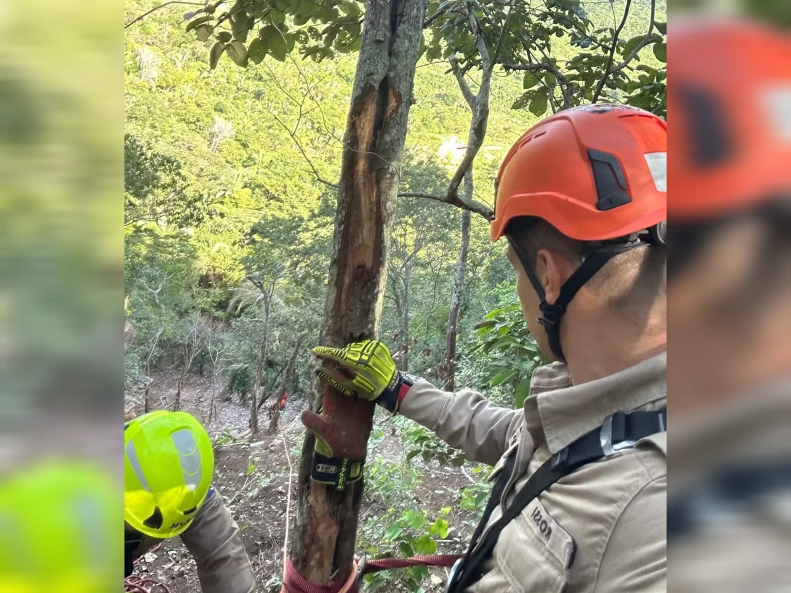 Em uma tentativa de fuga, um dos suspeitos desceu o morro, mas não conseguiu se segurar, resultado em uma queda fatal.