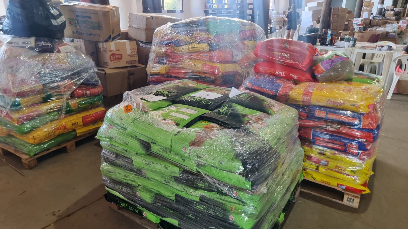 Alimentos não perecíveis, ração para animais de estimação e outros itens essenciais continuam sendo prioritários para ajudar as vítimas das enchentes.