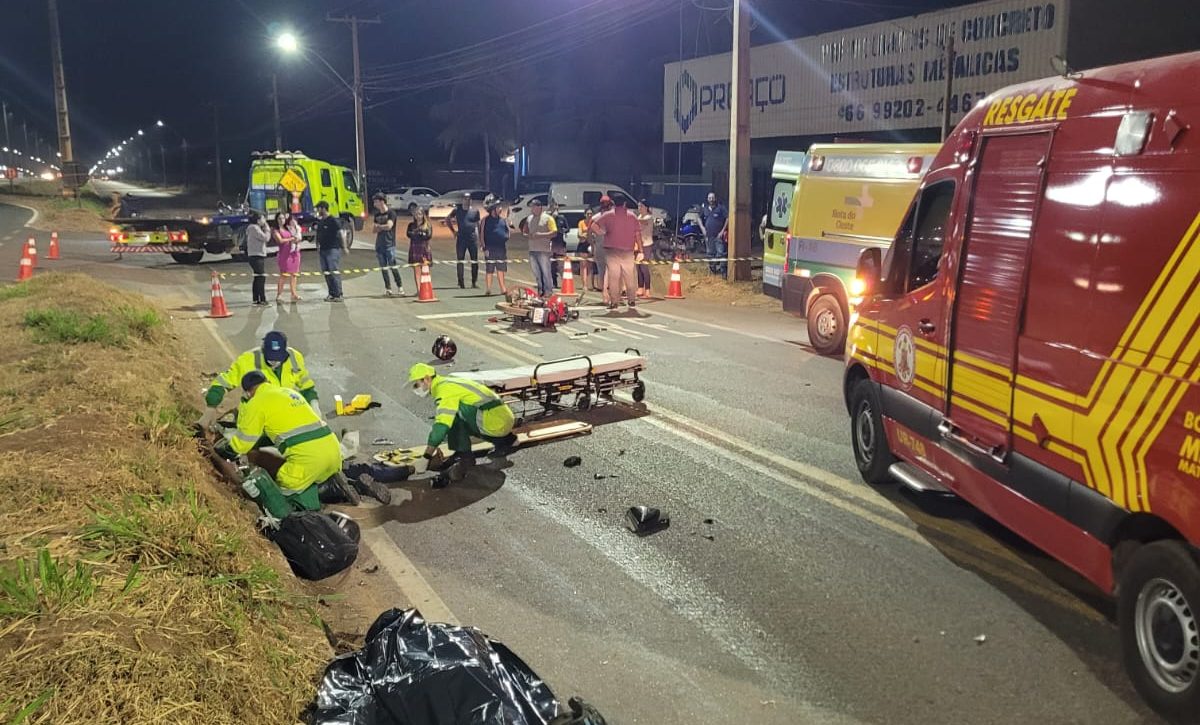 Na noite de terça-feira (25), um acidente envolvendo duas motocicletas na rua Colonizador Ênio Pipino, em frente ao Posto de Molas Carretão, no setor industrial de Sinop, deixou um homem morto e duas pessoas feridas.