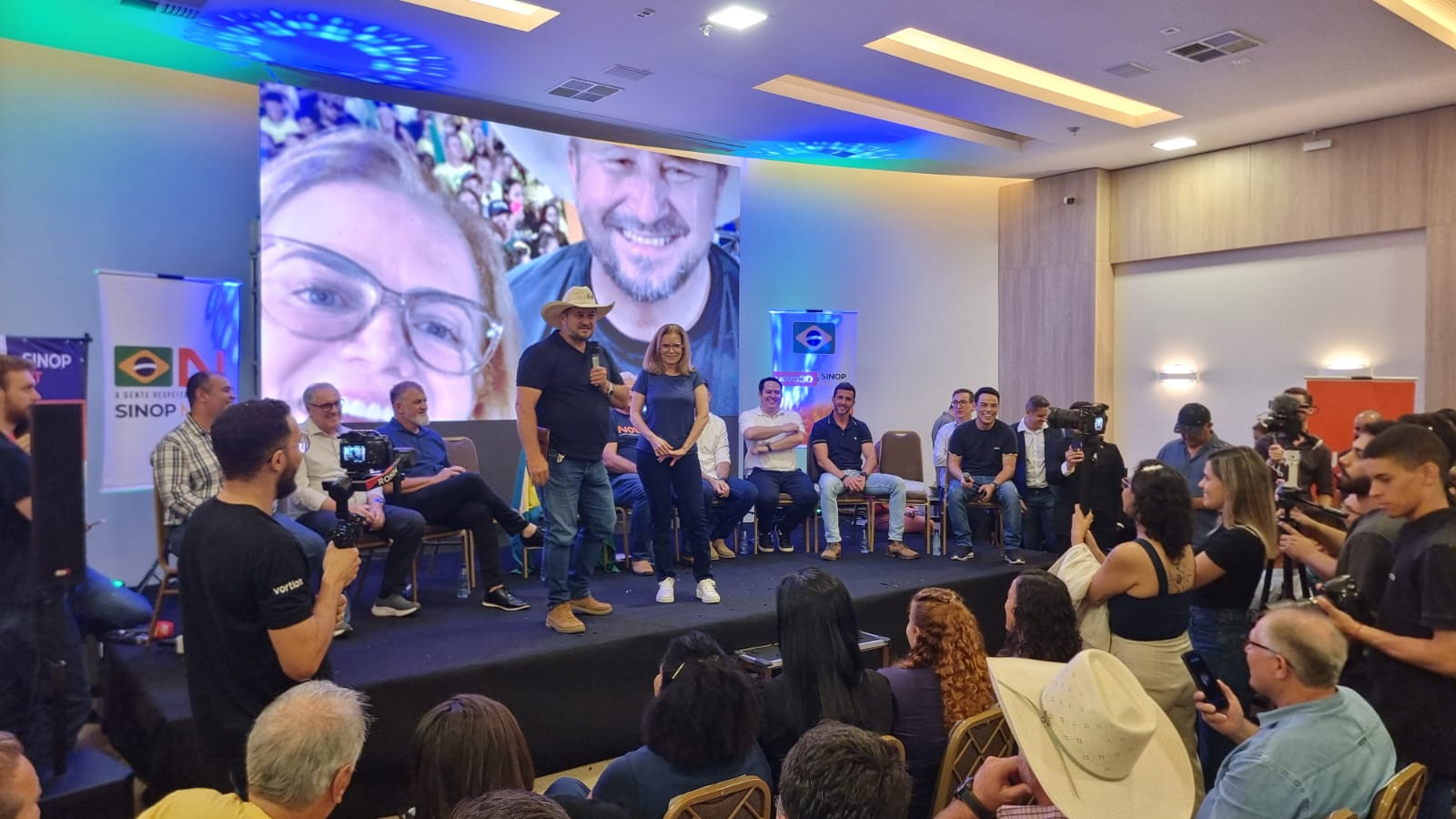 Na noite de ontem (01), no VIE Hotel em Sinop, foi realizado o lançamento oficial da pré-candidatura de Mirtes Grotta da Transterra à prefeitura pelo Partido Novo. O evento contou com a participação de autoridades políticas, incluindo o deputado estadual Gilberto Cattani, o presidente do Sindicato Rural de Sinop, Ilson Redivo, e o presidente municipal do partido, Antônio Galvan.