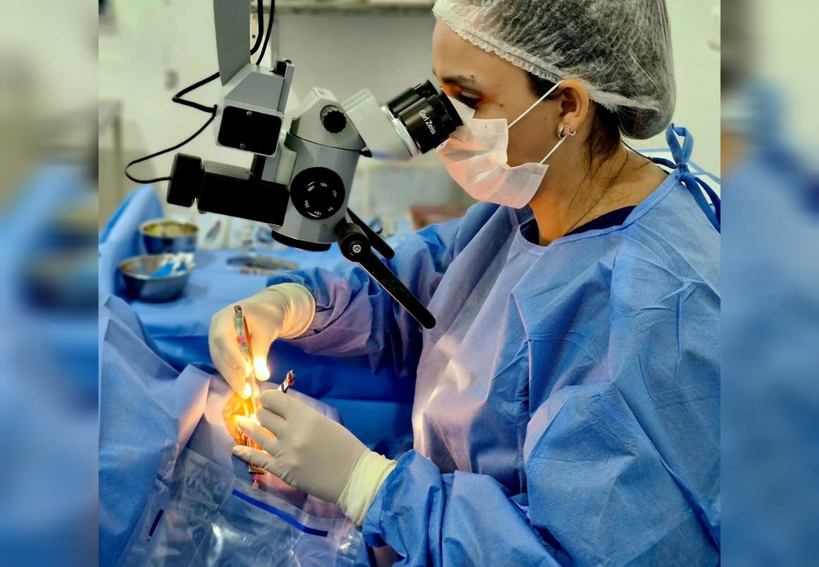 Paciente em cirurgia de catarata no mutirão da Prefeitura de Sinop (foto: reprodução)