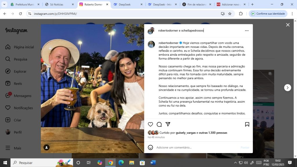 Prefeito Roberto Dorner e Scheila Pedroso anunciam fim do casamento