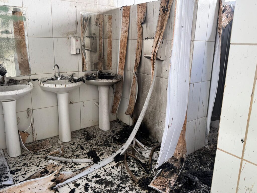 Banheiros da unidade após o incêndio