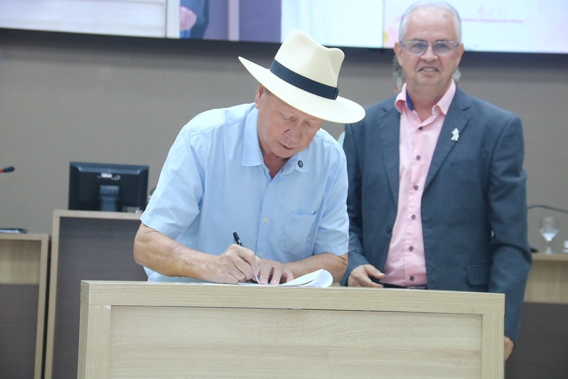 A solenidade de assinatura ocorreu na Câmara Municipal e contou com a presença de autoridades locais, vereadores, secretários e representantes da Caixa Econômica Federal.