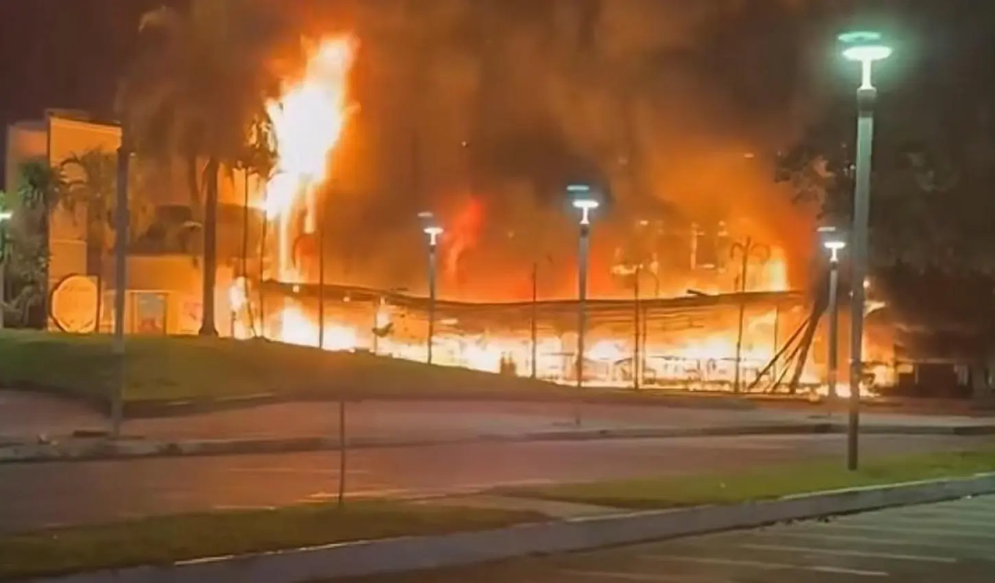 Vídeos registrados por câmeras de segurança e por pessoas que passavam pelo local mostram a estrutura sendo consumida pelo fogo.