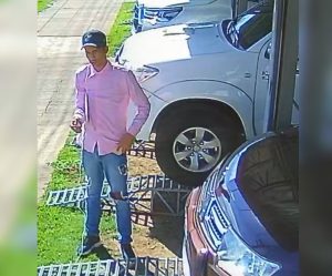 Um homem, vestindo calça jeans e camisa rosa, roubou uma camionete Mitsubishi L200 Triton de uma concessionária no bairro Jardim Botânico, em Sinop, enquanto realizava