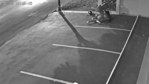 Câmeras de segurança de uma loja em Sinop registraram o momento em que um homem, usando calça jeans, camisa rosa e boné, roubou uma camionete